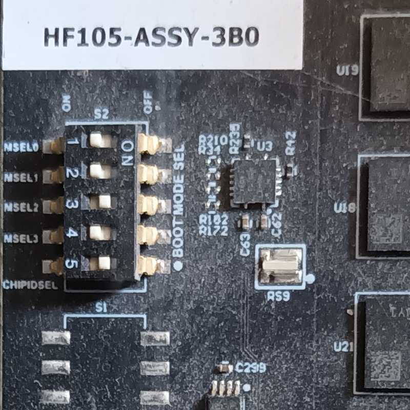 On version 2 of the HiFive Unmatched boards, the silk screen showing the orientation of the MSEL DIP switches is incorrect and should be ignored (follow the settings on the image above). The suffix of the board assembly number label indicates the board version, e.g. the 2 in HF105-ASSY-2A0 indicates board version 2.